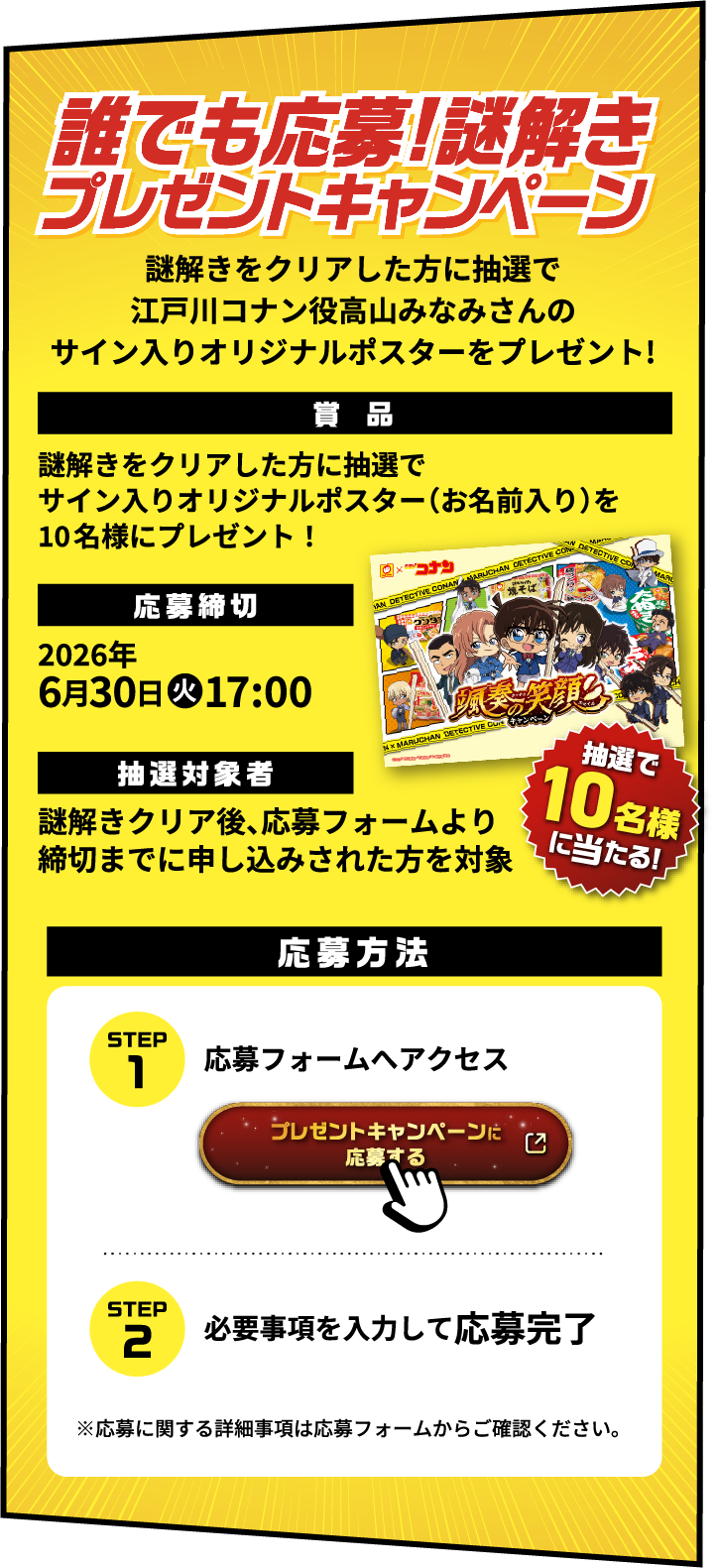 再挑戦すると、 キャンペーンの応募にはもう一度 謎解きをクリアする必要があります。 よろしいですか? ※応募はお一人様につき、 1回まで有効です。